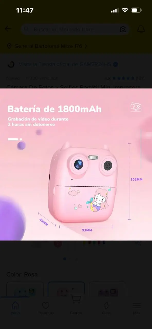 Cámara infantil con impresora